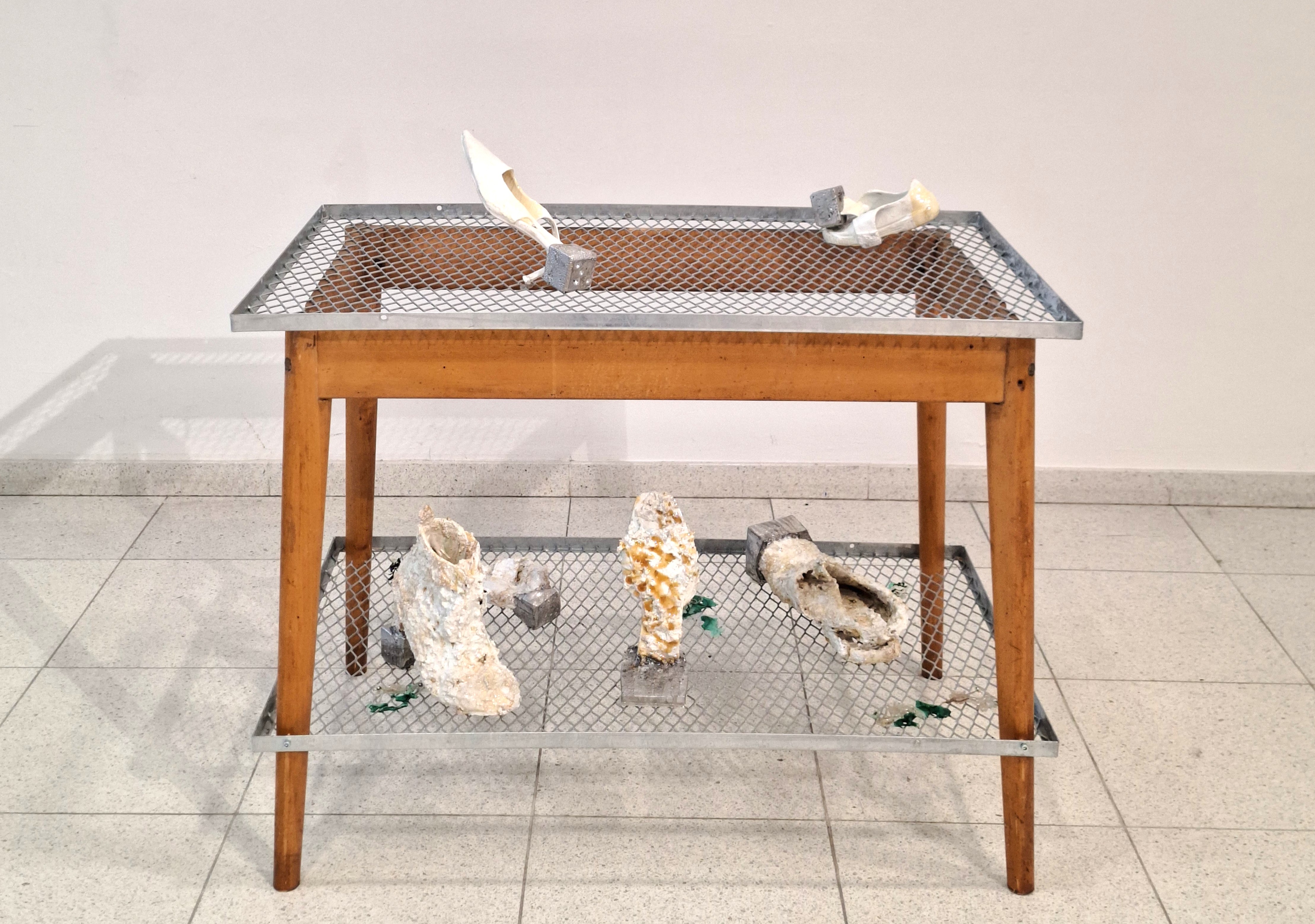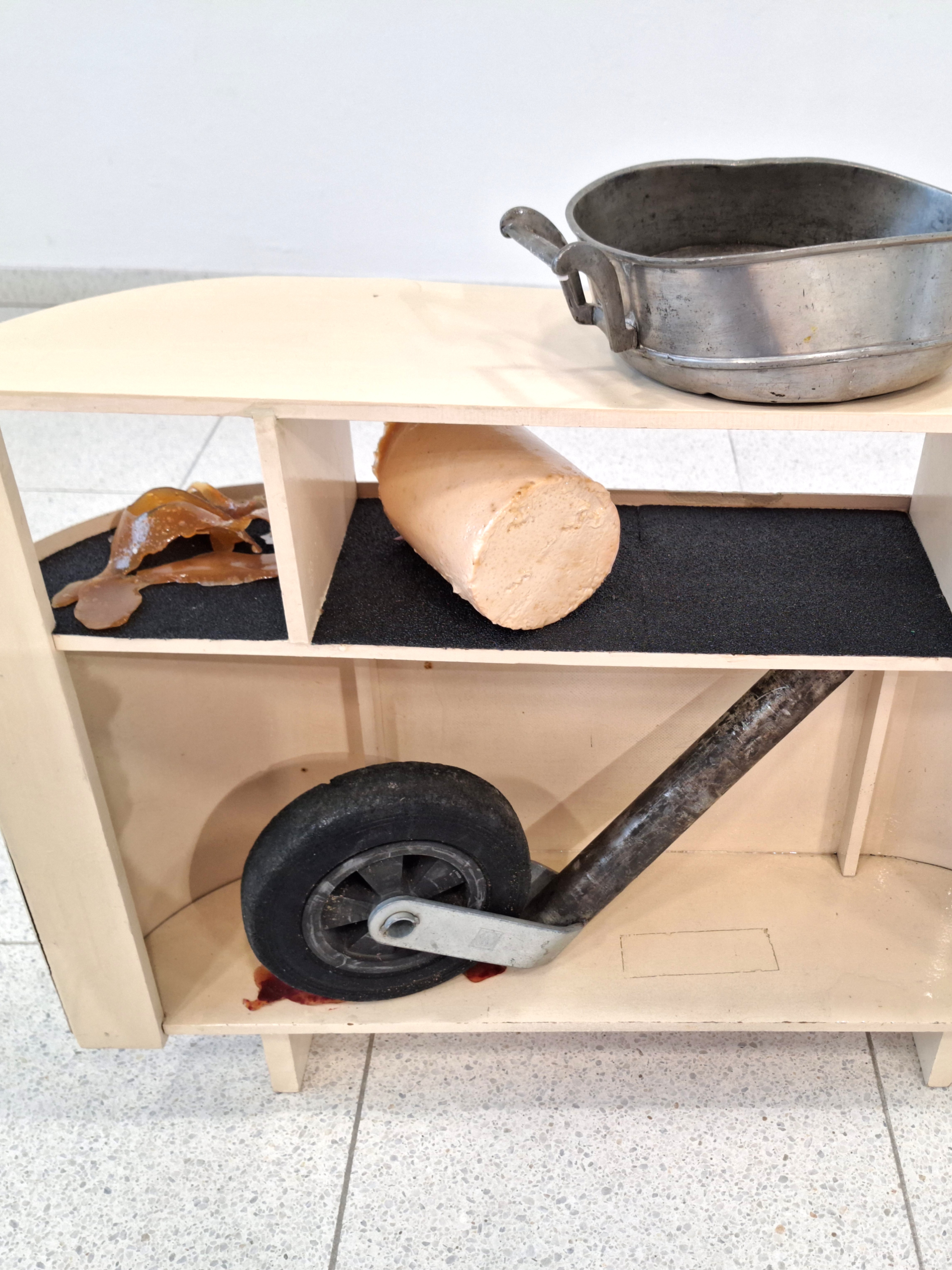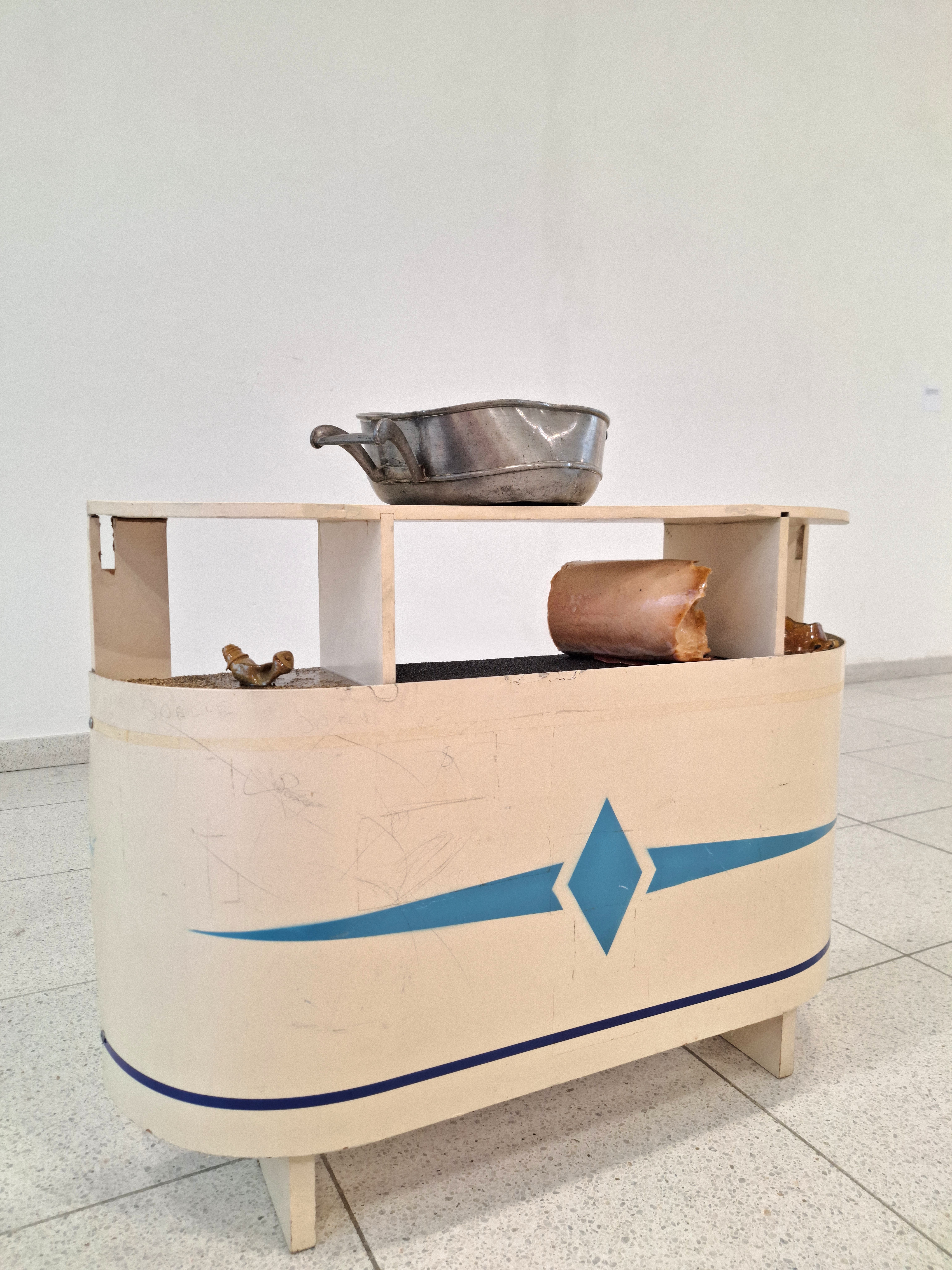 2025, Rauminstallation, Holz, Zinn, Metall, Mixed Media, HLB ca. 68 x 76 x 25 cm